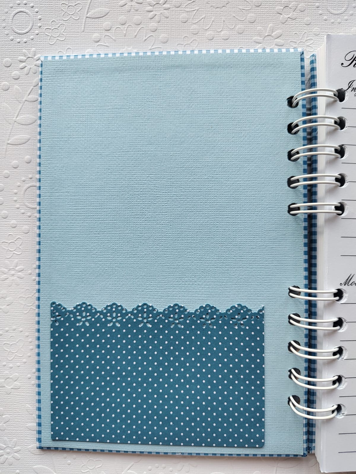 Capa confeccionada com papéis de scrapbook e toda decorada.