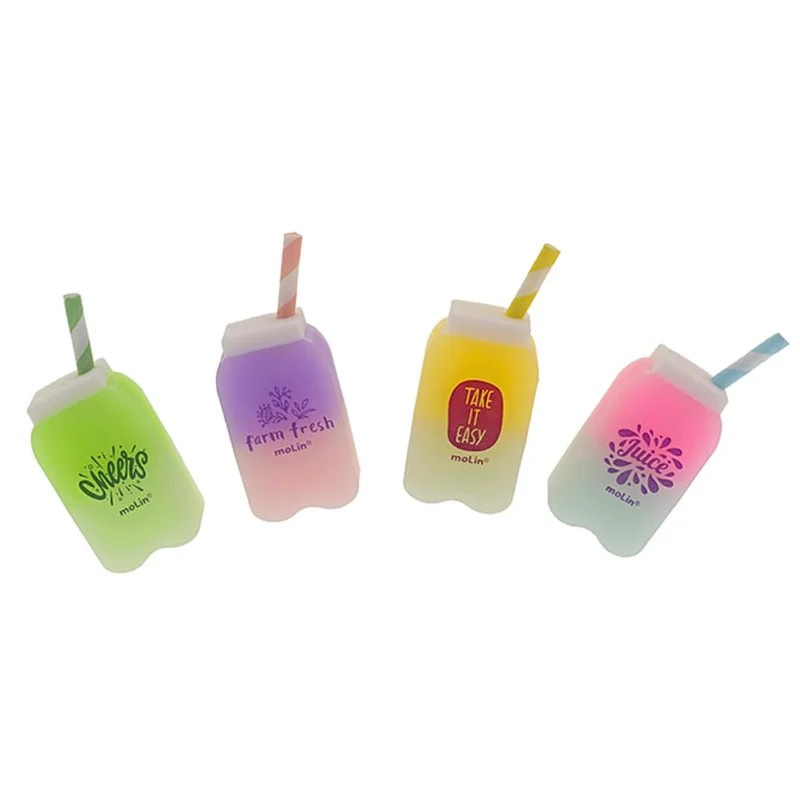 Feita com borracha macia e de alta qualidade, ela apaga com facilidade e sem deixar marcas. São 4 designs divertidos com frases inspiradoras e um cheirinho irresistível.