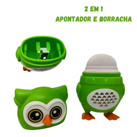 Apontador e Borracha Coruja 2 em 1 da Molin, é mais divertido e funcional, oferece um toque de alegria e praticidade à rotina escolar ou de trabalho.