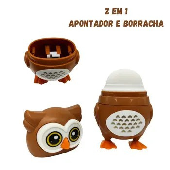 Apontador e Borracha Coruja 2 em 1 da Molin, é mais divertido e funcional, oferece um toque de alegria e praticidade à rotina escolar ou de trabalho.