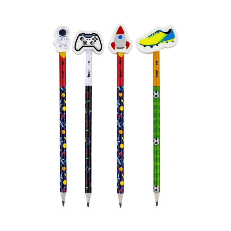 Lápis Preto HB Estampado Adventure C/ Borracha Brw - Mod. Chuteira