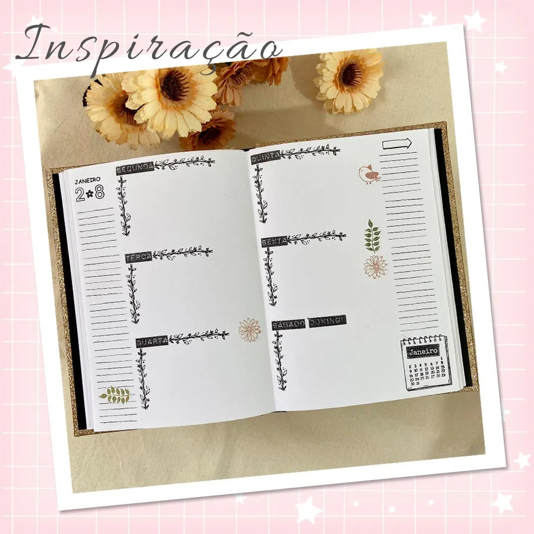 O Kit Carimbos Mini em Silicone Lilipop (Borda Floral) são perfeitos para quem não tem habilidades com letterings, desenhos ou dificuldades para decorar seu caderno, bullet journal ou planners.