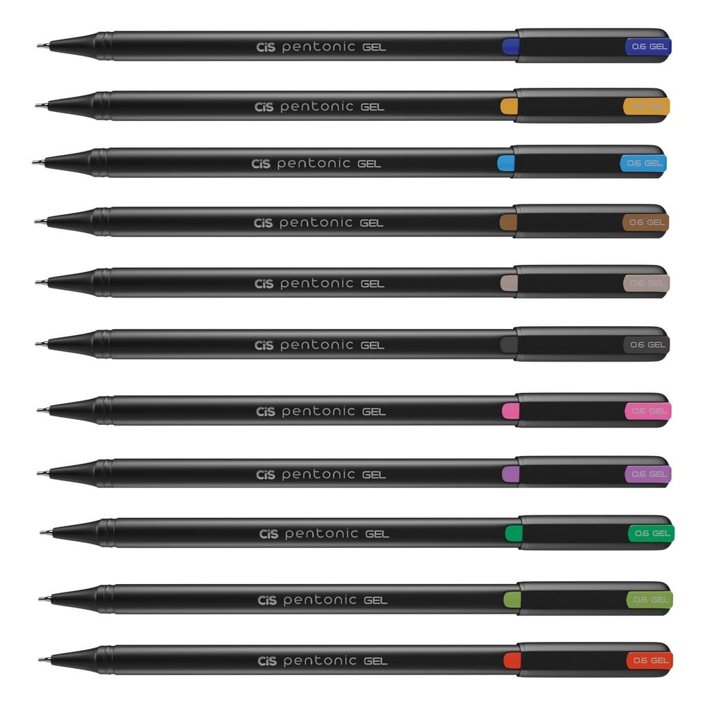 Escrita fluída e leve é o que descreve perfeitamente as canetas Pentonic Gel da Cis. Possui o corpo na cor preta com indicação da cor da tinta na tampa e no topo da caneta, estas canetas são projetadas para um fluxo consistente de tinta de baixa viscosidade que seca rapidamente evitando manchas.