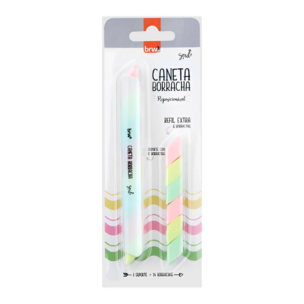 A caneta borracha da BRW é tudo que você precisava para deixar seu material ainda mais colorido!! Ela vem com 1 suporte e borrachas em 3 cores diferentes para você ir substituindo quando necessário. Além de super macia ela possui um corpo todo texturizado para não deixar escorregar na hora de apagar.